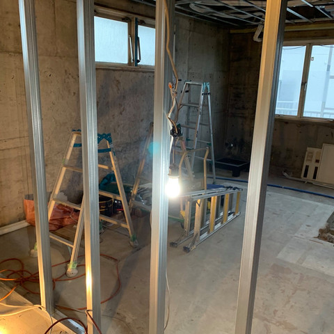 機械室をクールに保つ重要な存在です! また、コワーキングスペースも同時に30人は入れるようにこちらにもエアコンを2機設置します!周波数割り当てまであと少し!